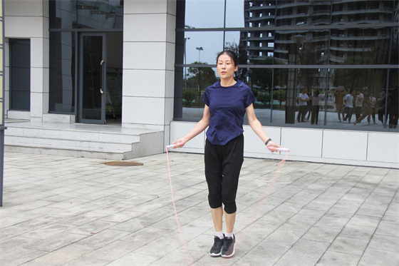 整場比賽分為“單人跳繩”、“雙人跳繩”、“集體跳繩”三個項目,以科室為單位自選項目,職工自由組合,在各項目規定時間內以完成數量多少決出名次。
