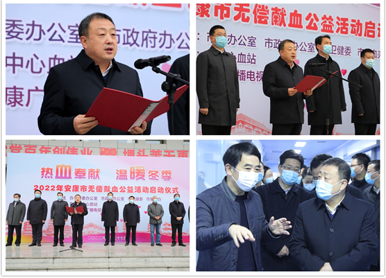 市委、市政府等市級領導連續4年組團式參加“熱血奉獻 溫暖冬季”無償獻血公益活動并帶頭獻血,市無償獻血領導小組印發了《關于切實加強無償獻血工作的通知》,為今后一個時期全市無償獻血工作高質量發展規劃了新藍圖,提出了新要求。ipZ安康新聞網