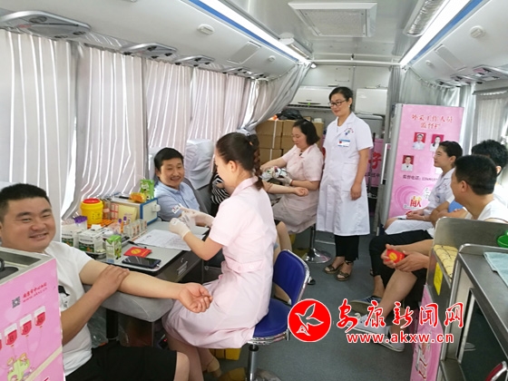 安康新聞網訊(通訊員 徐文渝 李祖平)今天的天氣,溫度依然很高。安康市中心血站的采血車停在滔河鎮衛生院門前。一群內心滿載著愛的志愿者,用自己的熱血去點燃……