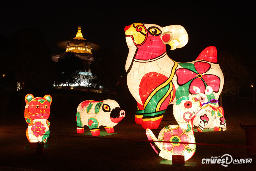 鳳翔的彩繪泥塑十二生肖被制成了花燈,泥塑彩羊則是當仁不讓的主角。