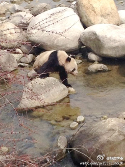大熊貓受到驚嚇徘徊在河邊。(圖片來源于網絡)