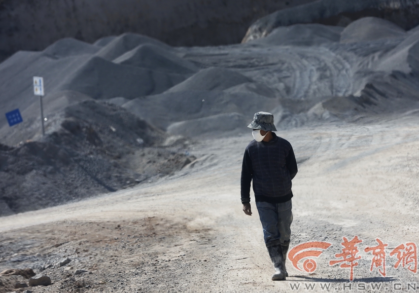 石料開采加工時粉塵嚴重,工人作業時都需戴防護用具。 記者 鄧小衛 文/圖
