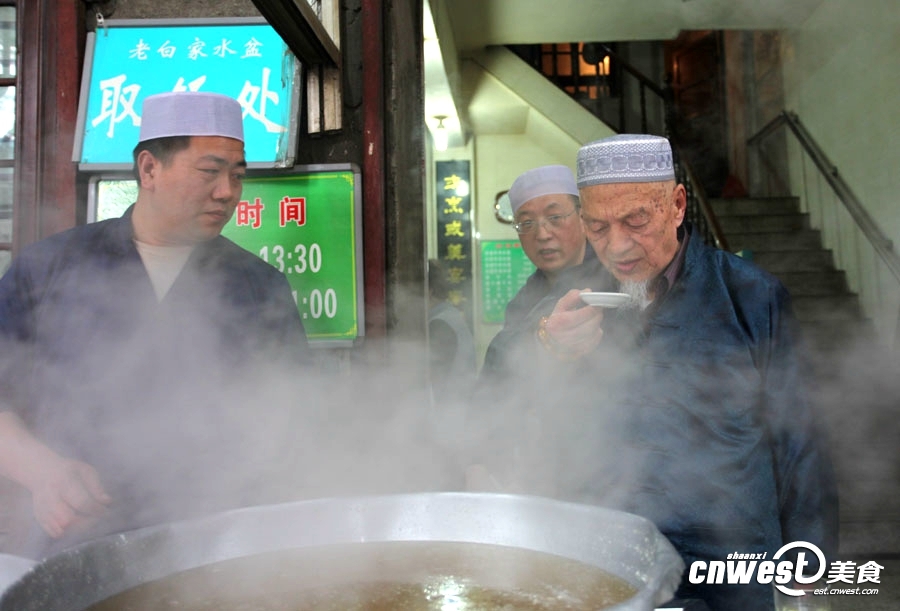 話說西安回坊的北廣濟街上有個老白家水盆,看似貌不驚人,卻有一百多年的歷史,這個家族已有五代人傳承制作水盆羊肉的技藝。老白家水盆的第三代傳承人白玉亭,已經83歲了,如今,老爺子依然每天坐鎮自家的“老同盛永”號,一日三餐,必食自家的水盆羊肉。一則離不開自家這口,二則監督兒女們的出品質量。D8w安康新聞網