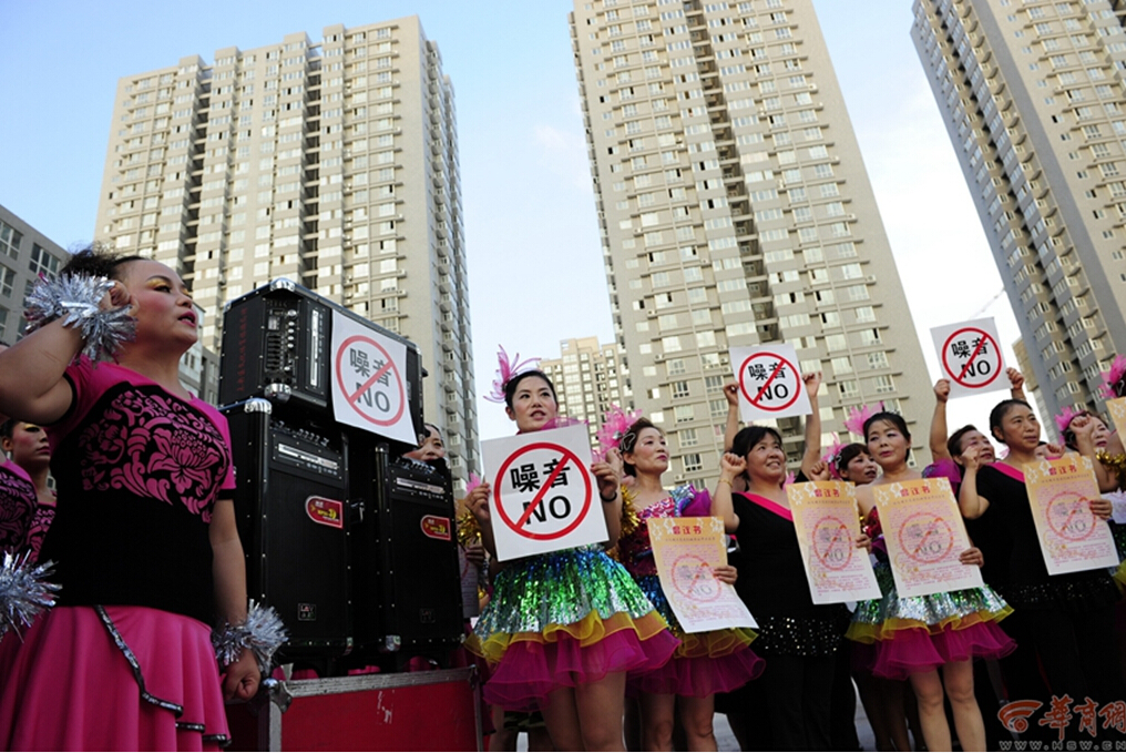 昨晚7時(shí)許,西安市未央?yún)^(qū)百花家園小區(qū),眾多廣場舞愛好者一起向廣場舞的音箱貼標(biāo)語,向噪音說“No”。跳廣場舞十多年的席云霞說:“我十分喜歡跳廣場舞,不……