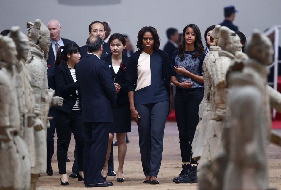 2014年3月24日,西安,美國“第一夫人”米歇爾抵達西安,根據(jù)行程安排,他們一行將參觀秦始皇兵馬俑并登上城墻,感受千年古都的魅力。……