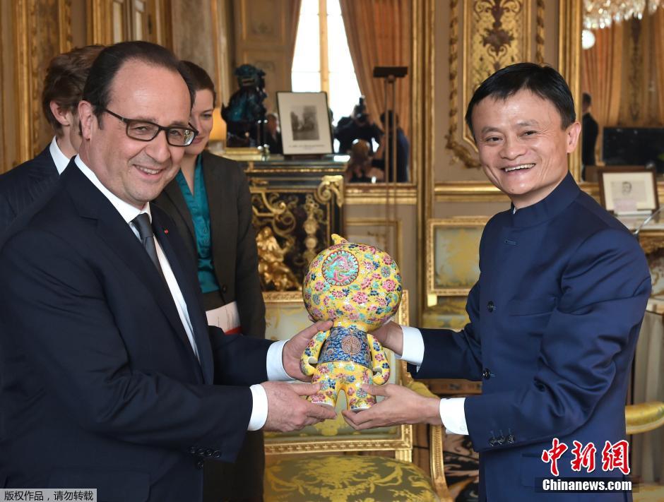 當(dāng)?shù)貢r(shí)間2015年3月18日,法國巴黎,阿里巴巴集團(tuán)CEO馬云抵達(dá)愛麗舍宮,與法國總統(tǒng)奧朗德舉行會(huì)談。uzf安康新聞網(wǎng)