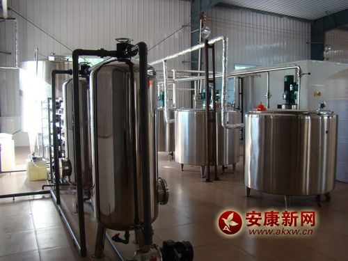 走進生產(chǎn)車間,地面干凈明亮,標識清晰明了,儀器設備被擦拭得锃亮,廠房中間存放著待運輸?shù)囊桌弈竟厦}飲。據(jù)顧戰(zhàn)省介紹,木瓜脈飲的生產(chǎn)過程大致可以分為水處理、原料處理、發(fā)酵、調(diào)配過濾、滅菌、灌裝封蓋、巴氏滅菌等七個部分,水處理包括原料處理和木瓜醋發(fā)酵,要用到多介質(zhì)過濾器、活性炭過濾器和反滲透過濾器各1臺,并且有嚴格的進出水流量和電導率控制參數(shù)。原料處理包括挑選、清洗、破碎榨汁等工藝,這個環(huán)節(jié)可以與其它生產(chǎn)線通用,也是用工量最大的環(huán)節(jié),在生產(chǎn)旺季時可以吸納100至120人就業(yè),主要從事成熟木瓜果實的選取、清洗和削皮等基礎性工作。要不是親眼所見,很難想象出小小的一瓶飲料竟然需要經(jīng)過如此繁雜的生產(chǎn)過程。