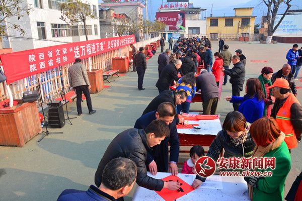 安康新聞網(wǎng)訊(通訊員 吳磊 郎海俠)1月23日,由陜西省文聯(lián)、陜西省書協(xié)組織的“送萬福進萬家”義寫春聯(lián)公益活動在縣體育場舉行,省書協(xié)副主席史星文、吳福春、劉偉群等數(shù)十位省、市書法家參加義寫活動?h委常委、宣傳部長魯延福出席活動并致辭。