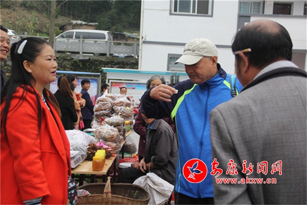 在農產品展銷區,各消費扶貧展位前人頭攢動,熱鬧非凡。來自白河縣內的17家企業以及全鎮7個村群眾帶來的筍子干、甜桿酒、土蜂蜜、茶葉等各種農副產品琳瑯滿目,引得前來趕集的人們紛紛品嘗、購買。