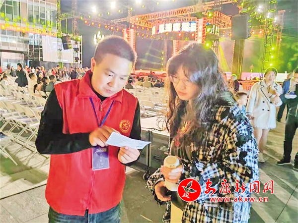 “媽?zhuān)也换貋?lái)吃晚飯了。今晚有志愿服務(wù)活動(dòng)。”春節(jié)前夕,剛結(jié)束工作的周陽(yáng)艦匆忙和家里通了電話,馬不停蹄從單位趕到縣影劇院,投入白河春晚現(xiàn)場(chǎng)維穩(wěn)志愿服務(wù)活動(dòng)中。