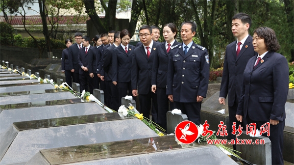 烈士陵園里,蒼松翠柏掩映著一塊塊莊嚴肅穆的墓碑,每一塊墓碑都記錄著一位烈士的英勇事跡和無私奉獻。全體干警整齊列隊,肅立在烈士墓前,敬獻花圈,鞠躬默哀,悼念長眠在這方熱土的烈士忠魂,寄托無盡的哀思和敬仰。
