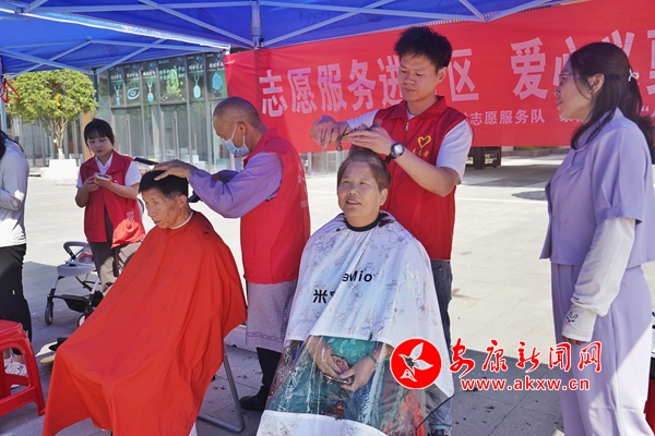 活動現場舉辦的“孝義善舉”主題書畫作品展,內容豐富、書體多樣,吸引了許多群眾前來觀看。最受老人歡迎的愛心義剪活動前,身穿紅馬甲的志愿者耐心熱情地詢問著老人的需求,為他們提供免費理發服務,看見鏡中煥然一新的發型,老人們臉上洋溢著滿意的笑容。