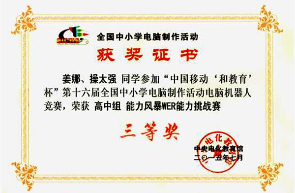 “中國移動(dòng)‘和教育’杯”第十六屆全國中小學(xué)電腦制作活動(dòng)結(jié)果日前揭曉,白河高級(jí)中學(xué)學(xué)生姜娜和操太強(qiáng)在高中組能力風(fēng)暴WER能力挑戰(zhàn)賽——&……
