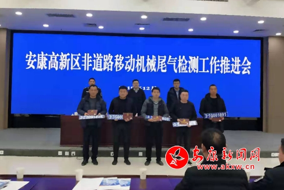 會議就《非道路移動機械知識》進行了宣講培訓,宣讀印發了《安康高新區生態環境局關于開展非道路移動機械尾氣檢測的通知》文件,F場為企業、建筑工地內非道路移動機械使用單位個人代表頒發了號牌和登記證書。