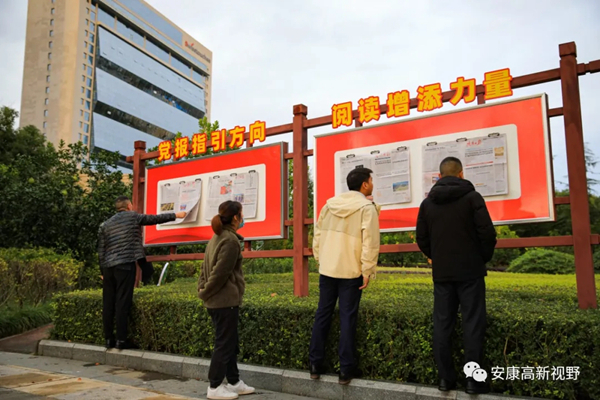 安康高新區(qū)在布設(shè)“閱報欄”的基礎(chǔ)上,明確了創(chuàng)文辦為管理部門,初步制定了日常管理規(guī)范,切實做到《人民日報》《經(jīng)濟日報》《陜西日報》《安康日報》等黨報黨刊在第一時間換新、破損在第一時間更換,確保把黨的聲音在第一時間傳達到千家萬戶,把黨的溫暖及時送到每個角落,進而匯聚起加快建設(shè)西北生態(tài)經(jīng)濟強市的磅薄力量。