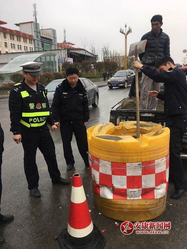 高新區多個“反光桶”臨時站崗 為駕駛員守護安全