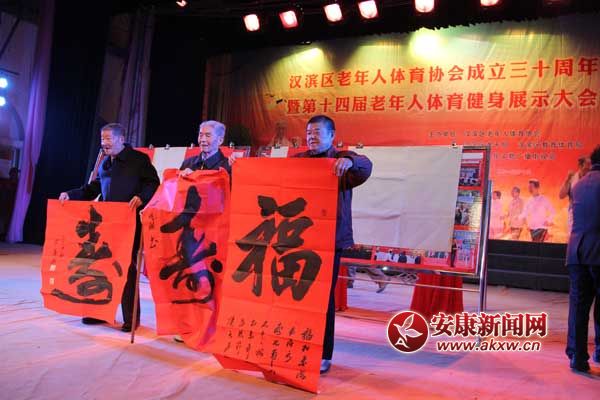 區老體協主席徐韜向大會作了熱情洋溢的致辭,他對區老體過去30年工作作了簡要的總結和回顧,對全區老體工作進行了展望。他說:回顧過去,精彩無限。展望未來,天高地闊,區老體協班子有信心有能力把工作做得更好,有責任帶領全區廣大老年體育愛好者實現老有所樂、老有所為,有義務為更多的老年朋友提供體育健身服務,引領了全區老年人健康活動持續向縱深發展,為構建漢濱和諧社會做出新的更大的努力。SDj安康新聞網
