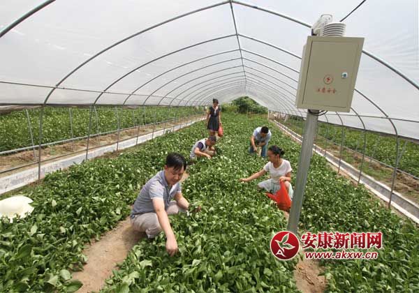 安康新聞網訊 (記者 王擁)7月27日,游客正在漢濱區大河鎮尚硒現代農業園區采摘降壓菜。園區負責人王彩春拿出手機點擊按鈕,手機上彈出園區一角,每個大棚實時的溫度、濕度、光照、風速、風向、雨量等信息也一目了然。他說,這是園區安裝的智能化系統,將物聯網技術運用到傳統農業中,通過移動平臺,對農業生產進行控制,使傳統農業更具智慧。據悉,該園區是我市首家投入運營“智慧農業”的園區。DBt安康新聞網