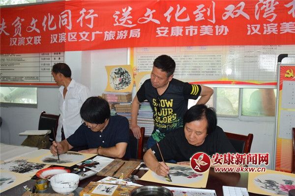 安康新聞網訊(記者 牟慶紅 )由安康市文聯 漢濱文聯 安康市美協 漢濱美協 漢濱區文廣旅游局組織的“精準扶貧文化同行 送文化到雙灣村”活動6月25日在漢濱區中原鎮雙灣村舉行。CD8安康新聞網