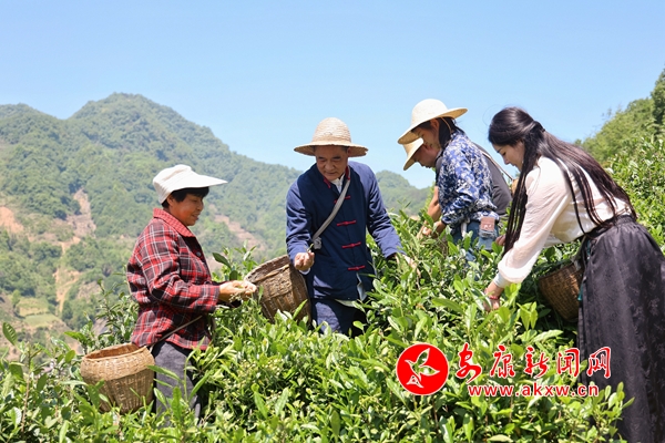 立夏時節,漢濱區大竹園鎮茶棧村,王春久和茶農們在海拔800米之上的高山茶園采摘鮮葉,制作春茶過后頭采夏茶。xJM安康新聞網