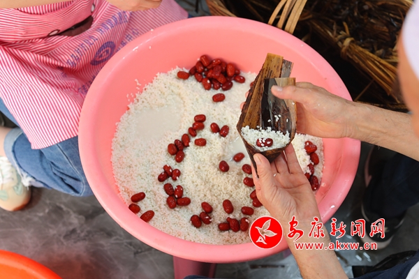 伴隨著一陣濃濃的糯米香撲鼻而來,只見馬峰亮將筍殼粽葉疊放,彎成圓錐狀,抓起一撮泡好的糯米,填入本地紅豆沙,粽葉彎折捆扎后,一個有棱有角安康傳統豆沙粽就完成了。蒸煮兩個半小時,剛出鍋的安康傳統手工粽,冒著騰騰的熱氣,剝開粽葉,一口下去,軟糯香甜、筋道拉絲,回味無窮。UHP安康新聞網