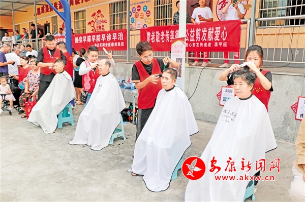 現場,通過有獎問答、發放宣傳資料、設立咨詢臺等形式,向村民進行平安建設、普法、反詐等宣傳。來自漢濱區陽光愛心護理院的志愿者們為老人們提供健康指導。愛心人士龔甲超組織的義剪活動也受到了老人們的歡迎,志愿者們免費為現場50多名老人理發。書法家們現場圍繞“孝義”主題進行創作,并贈送給群眾。演出結束后,近百名老人到社區的孝義食堂參觀和免費用餐。