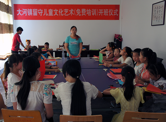 7月16日,漢濱區文廣局、區文化館組織書畫、音樂、剪紙、攝影輔導老師前往大河鎮金倉社區為140名山區留守兒童舉辦書法、兒童畫、音樂、剪紙等藝術門類免費輔導培……