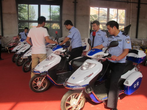 據(jù)秦鳳公司技術(shù)員沈杰介紹,這6輛警用電動(dòng)車有別于市場(chǎng)上銷售的家用電動(dòng)車,該車輛配件全系公安專用材料組裝而成。黏貼有警用徽章、公安圖標(biāo)字樣,配備了專用警燈、喊話器及裝備箱等特殊材料。