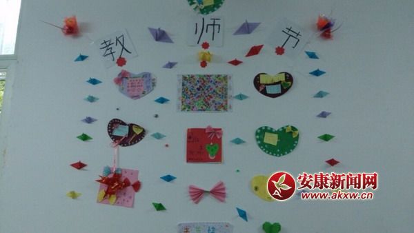 安康新聞網訊 (通訊員 王純) 9月10日早晨,當漢陰縣澗池鎮中心小學的老師們進入校門時,一句簡單的“老師,節日快樂”由文明禮儀值日生說出,帶給了每一位教師滿滿的好心情。走進校園,整齊的展板上有1—3年級學生為老師準備的自制賀卡,也有高年級的同學們慶祝教師節的小手工。不花一分錢,自己動手,孩子們用心傳遞的感恩之情,處處溫暖著老師的心。UWq安康新聞網