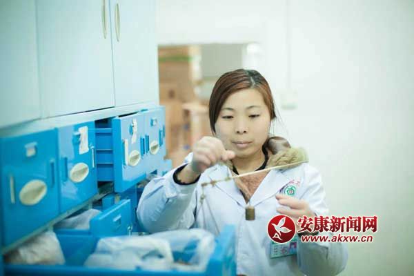 藥房主任楊小玉正仔細核對著藥品,澗池衛生院一直堅決貫徹實施基本藥物制度,實行網上集中采購與零差價銷售兩個100%,讓群眾看病不再昂貴。