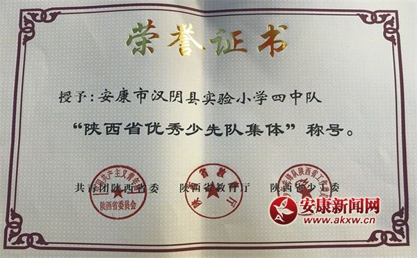 據了解,漢陰縣少先隊工作除獲省級表彰外,還有7名師生,2個學校分別榮獲“安康市支持少先隊工作好校長、安康市優秀少先隊集體、安康市優秀少先隊輔導員、安康市十佳少先隊員”等榮譽,漢陰縣平梁初級中學團委同時還榮獲安康市“五四”紅旗團委榮譽稱號。