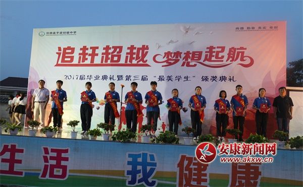 安康新聞網訊(通訊員 林愛銘)6月22日晚上,漢陰縣平梁初級中學在學校運動場舉行了2017屆畢業典禮暨第三屆“最美學生”頒獎典禮。縣教體局、蒲溪中學、漢陽中學、平梁小學有關領導,學生家長代表,平梁小學住宿生與平梁初中全校師生一同參加了本次活動。Wpi安康新聞網
