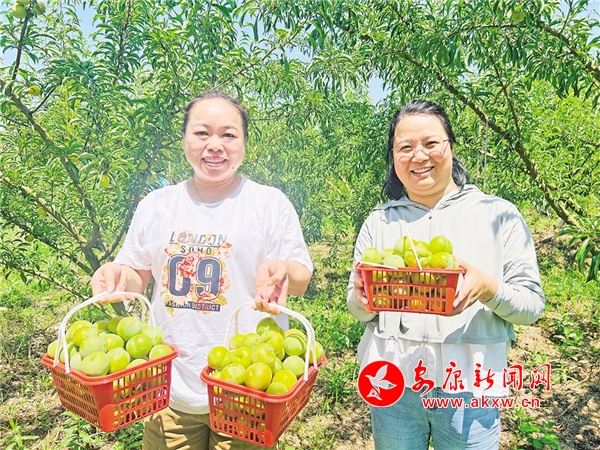 “在這果園里干活5年了,不摘李子的時候,就施肥、除草等,一年四季這里都有活干,現(xiàn)在園里的李子熟了,我們附近的村民來這里干活,一天能掙到100多塊錢,我年齡大了沒辦法出去務工,在家門口就能掙到錢,非常高興。”村民張鳳英一邊忙著摘李子一邊介紹。