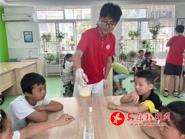 鳳臺小學學生郝錦燃表示,這些大哥哥大姐姐非常認真負責,給我們介紹一些知名的大學,讓我們增長了見識。其次課間他們會帶我們打乒乓球、打籃球,帶我們做一些化學實驗,讓我們增長了知識,使我們的暑假過得更有意義。