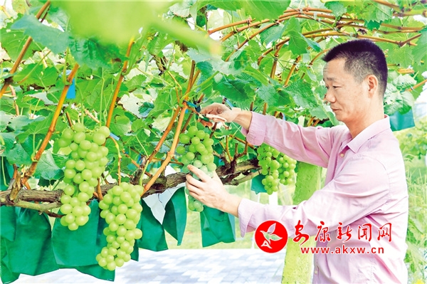 青脆李只是漢陰縣特色果業(yè)的一個(gè)縮影。走進(jìn)城關(guān)鎮(zhèn)三坪村,一串串陽光玫瑰葡萄被“保護(hù)”在套袋里,掛滿了藤架。取下袋子,一顆顆鮮嫩水靈的葡萄在陽光下晶瑩剔透、青翠欲滴,吃起來更是爽脆、甘甜,還帶著淡淡的玫瑰香味。工人在園內(nèi)修枝、摘果,滿園的葡萄傳遞著“豐收的信號(hào)”,一幅產(chǎn)業(yè)興、鄉(xiāng)村美、果農(nóng)富的甜蜜畫卷正悄然展開。