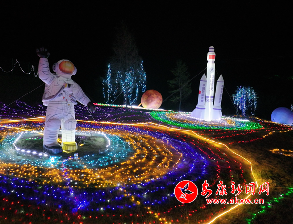 晚上八點(diǎn)夜幕降臨,中堰村篤敬農(nóng)業(yè)生態(tài)園內(nèi)一片燈光璀璨,造型各異的燈光秀給園區(qū)披上了流光溢彩的華衣,游客漫步其中駐足欣賞、拍照打卡留念,開(kāi)啟一段沉浸式光影夜游之旅。