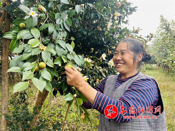 “今年在這個園子里從正月份干到現(xiàn)在,大概有30000多塊錢工資。這兩天在茶園里撿茶果150元一天,再過幾天園子里還割草,活還很多,活還好做、輕松。”村民余祖錄樸爽朗的笑聲和自豪的夸贊聲給這個靜謐的村子孕育了無限生機(jī)。陽光仍盛,他手中的活兒還未停歇,天高云淡風(fēng)輕,抬眼可望的勝雪油茶花勾勒出了一幅美好的山鄉(xiāng)“豐”景圖。