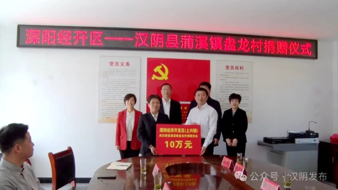 隨后,夏國中一行前往漢陰縣優鮮到家農業科技有限公司進行座談。會上,該公司負責人就企業運營模式、發展狀況、企業發展存在的問題等情況作了匯報。溧、漢雙方肯定了該公司在蘇陜協作中的突出貢獻,同時還就農旅融合、產業發展、人才交流等工作進行溝通交流,希望通過農產品批發市場、商貿流通企業等渠道,發揮線上交易、直播帶貨作用,持續推動“陜貨進蘇,蘇貨入陜”。會后,溧陽經開區、溧陽市殘聯分別向蒲溪鎮盤龍村、漢陰縣扶殘助殘資金各捐贈10萬元。