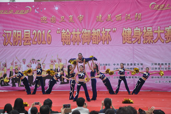 安康新聞網(wǎng)訊(通訊員 賀磊)舞姿炫麗,弦律躍動(dòng),激情燃燒……5月13日,漢陰縣舉辦“翰林御都杯”健身操大賽決賽,12支隊(duì)伍在城南鳳凰廣場共競舞藝……