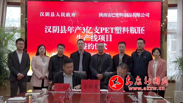 漢陰縣年產3億支PET塑料瓶胚生產線項目簽約
