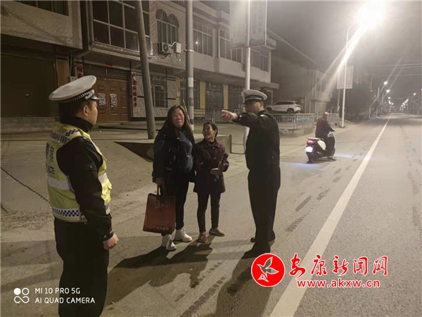 11月10日晚21時許,租住在恒口示范區和平二巷的李某某報警稱:其母親今年70多歲了,患有老年癡呆癥,下午離家出走至今未歸,求助交警大隊給予幫忙查看監控。當日大隊帶班領導薛華副大隊長了解求助內容后,立即組織民警開展交通智能卡口網上巡查,同時,帶領值班民警上路巡邏,幫助李某某尋找走失母親。原來,李某某中午送完孩子回家發現母親不在家,趕緊與家人在街上尋找,直到晚上九點了,還不見母親回來,情急之下報警求助,希望交警幫助調取路面監控查找母親蹤影。民警駕駛警車兵分兩路,一組在示范區各街道巡邏查找,一組沿316國道沿線巡邏查找,直至晚上22時20分許,民警在大同集鎮路段發現了走失老人。后經李某某到場證實,正是走失的母親,看到離家近十個小時的母親,李某某一顆懸著的心才終于放下,緊緊抱住母親胳膊接連向民警表示感謝。因為老人暈車,民警幫忙將老人扶上李某某的電動車,并一路閃爍警燈將老人護送回家。
