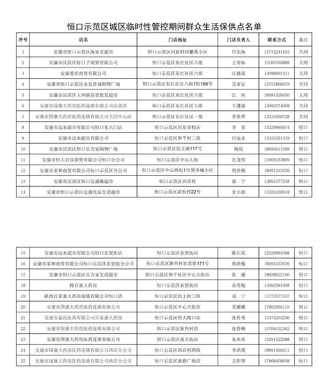 附件:恒口示范區臨時性管控期間群眾生活保供點名單