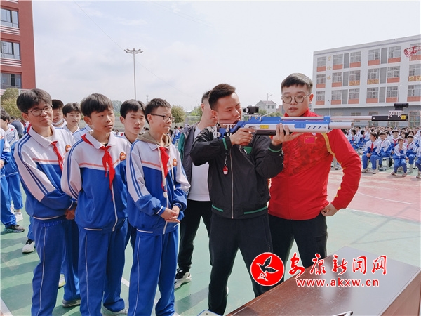 10米氣手槍項目兩屆奧運會冠軍、省射擊射箭運動協會主席郭文珺,射箭項目世界冠軍王剛,射擊飛碟項目全國冠軍張波,射擊步槍項目優(yōu)秀運動員李駿騰來到學校, 與廣大師生分享了自己的冠軍之路,鼓勵青少年要熱愛生活、熱愛運動,在運動中要善于拼搏、敢于拼搏,在運動中感悟奧運精神。同時,還告訴孩子們要認真學習文化知識,掌握一定的生活本領,爭做社會主義合格的建設者和接班人。