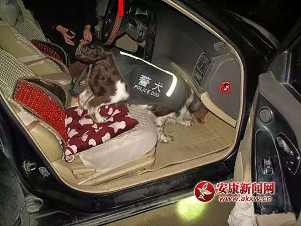 “吉祥”對王某的車輛進行搜查,車座夾縫內、后備箱隱蔽處……“吉祥”在車上三嗅兩聞之后對駕駛室儲物格左側不停的抓刨,尾巴左右高頻率的搖擺,并時不時的抬頭看著訓犬員,顯得特別興奮。訓犬員迅速上前檢查,果然發現了儲物格與前排座椅夾縫隱蔽處的一小包冰毒。民警當即帶王某做了尿檢,結果呈陽性,在證據面前,王某對其吸食冰毒、在車內藏冰毒的違法事實供認不諱。目前,違法人員王某已被依法行政拘留。