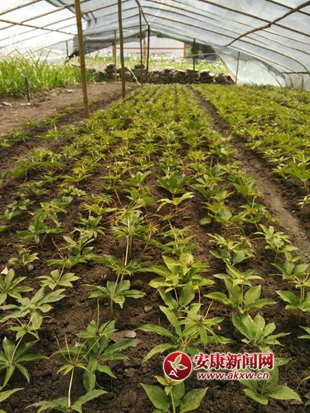 說到蔣家關(guān)的白芨,我很快想到了一個熟悉的名字“王富國”,在《陜西日報》和《安康日報》多次看到過他“兩分地收入10萬元”的相關(guān)報道,今年他還當(dāng)選了安康市第四屆人大代表。“這就是王富國家”,伍支書指著面前三間兩層還未粉刷的小洋樓向我們介紹。他的房前屋后都是塑料大棚,我們在大棚里見到了王富國,今年40多歲,消瘦的國字臉上那雙睿智的雙眼顯得與眾不同。大棚里密密麻麻的白芨瘋長著,緊挨著的一個棚里,布滿了“七葉一枝花”小苗,看到我們對白芨很有興趣,他便如數(shù)家珍地諞了起來。