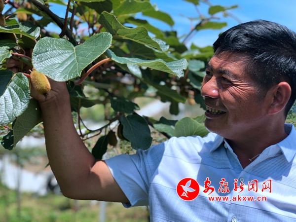 “今年是首次掛果,產(chǎn)量不大,3萬斤左右,預計帶來直接收益30余萬元”。邱文均一邊修剪長勢不好的果子,一邊介紹說。“獼猴桃專家說了,頭一年掛果,不能貪心,必須放棄殘次品,成長期的果樹才能專心供給養(yǎng)分,養(yǎng)出質(zhì)量上乘的果子”。談起獼猴桃管護,邱文均儼然已成為了農(nóng)技專家。