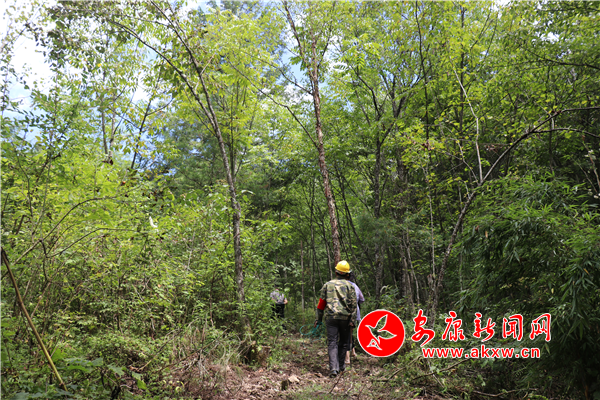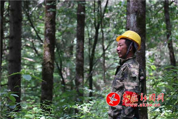 上山途中,朱忠銀邊走邊四處觀察,有什么異常情況會(huì)及時(shí)排除并記錄下來,看到垃圾隨手撿起。日復(fù)一日,風(fēng)雨無阻,他每天都要“鉆山溝、爬樹林”往返穿梭好幾次,管理著3200畝原始次生林,他用默默守護(hù)換來滿山蒼翠,守護(hù)著家鄉(xiāng)的這片綠色資源。