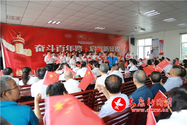 慶祝活動最后,全場黨員和群眾揮動手中的五星紅旗,一起合唱《我和我的祖國》表達了對偉大祖國的無限熱愛之情,活動在歡快的音樂節奏中結束。