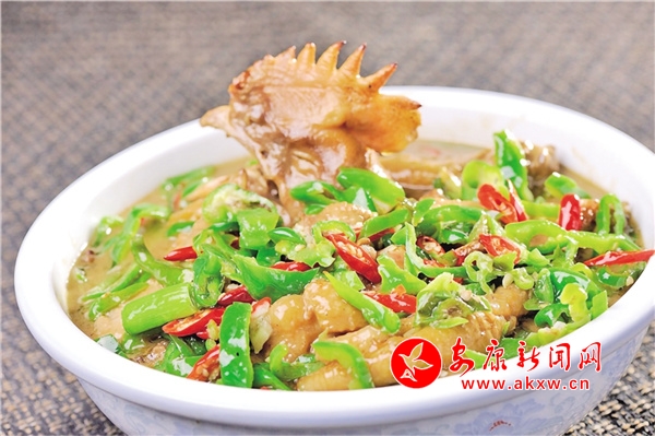 辣椒是農家自產的時蔬,魚是嵐河水孕育出的鮮魚,皆是原生態無公害食品。一個鮮綠,一個鮮嫩,色香味美,佳偶天成。