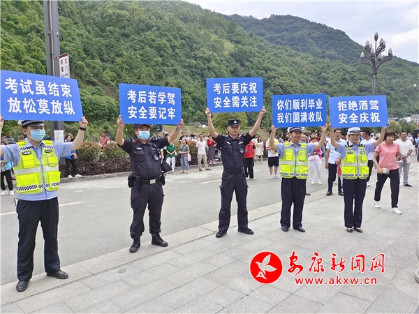本網訊(通訊員 翁玲)6月8日,高考落下帷幕,高考后學生放松放縱引發的道路交通事故增多的隱患也隨之而來,為引導考生及家長提高交通安全意識,源頭預防交通事故發生,嵐皋縣公安局交警大隊立足轄區實際,不斷探索反詐宣傳新手段、新方式,針對高考后考生及家長易發生的交通違法行為制作提示牌和宣傳橫幅,利用高考期間考生家長等待考生和考生考完試走出考點的有利時機,大力開展交通安全宣傳活動,在顯眼位置手舉提示牌,讓考生出考場的第一時間能看見交警的溫馨提示,用交通安全提示迎接考生凱旋。Uvk安康新聞網